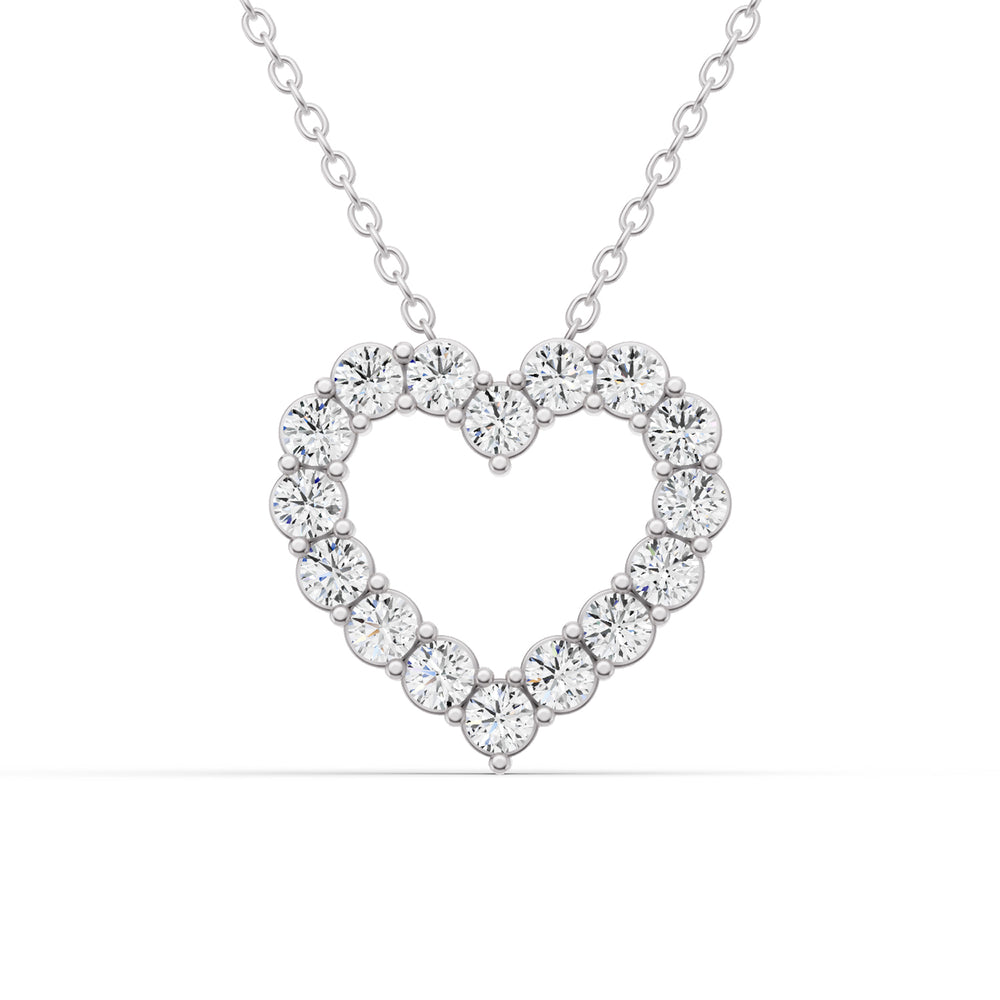 1.00 Ct. Tw. Round Lab-Grown Diamond Heart-Shaped Pendant is a stunning addition to any jewelry collection. Crafted in luxurious 14K white gold, it features 16 sparkling stones with a color grade of E-F and clarity of VS1-VS2. The heart shape symbolizes love and affection, making it a perfect gift for a loved one or a cherished piece for yourself. Elevate your style with this elegant pendant that combines modern sustainability with timeless beauty.